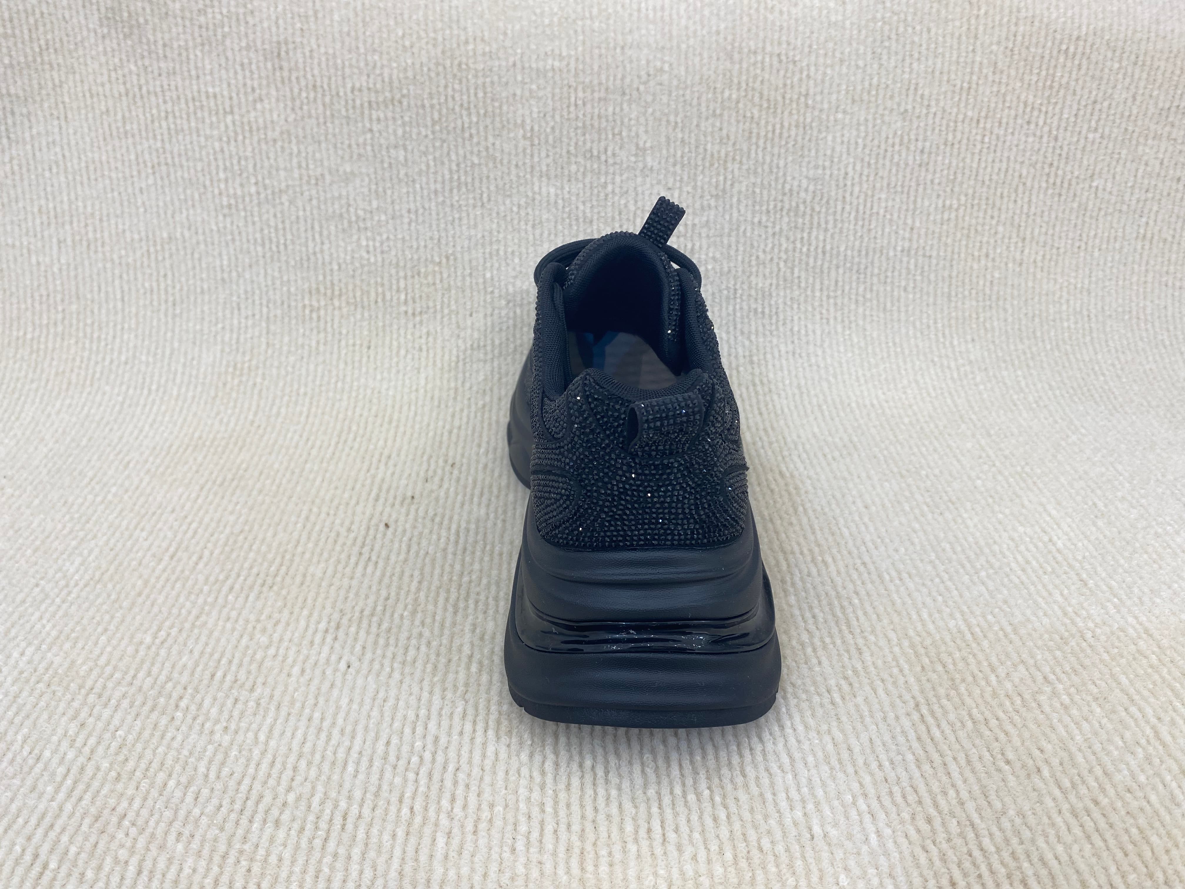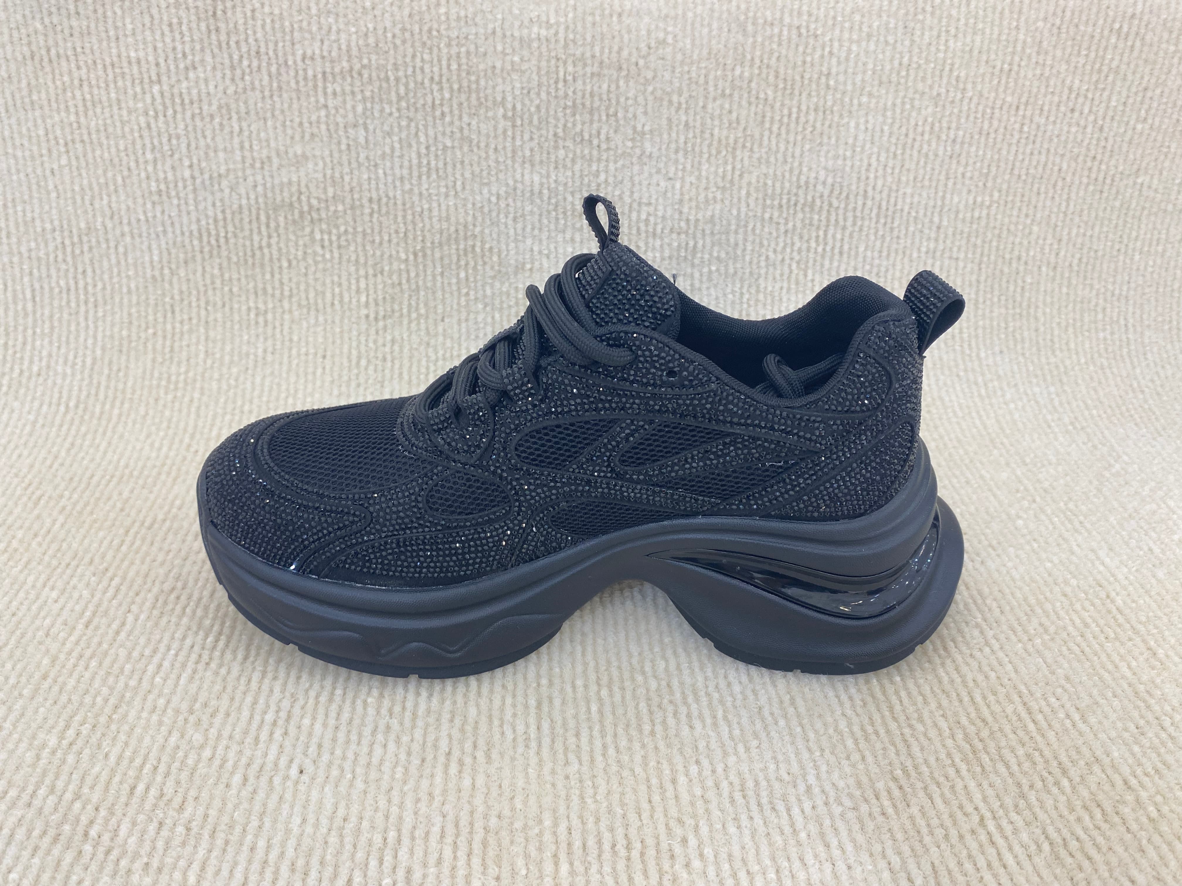 Women comfort sneakers with bling rhinestone breathable upper black color